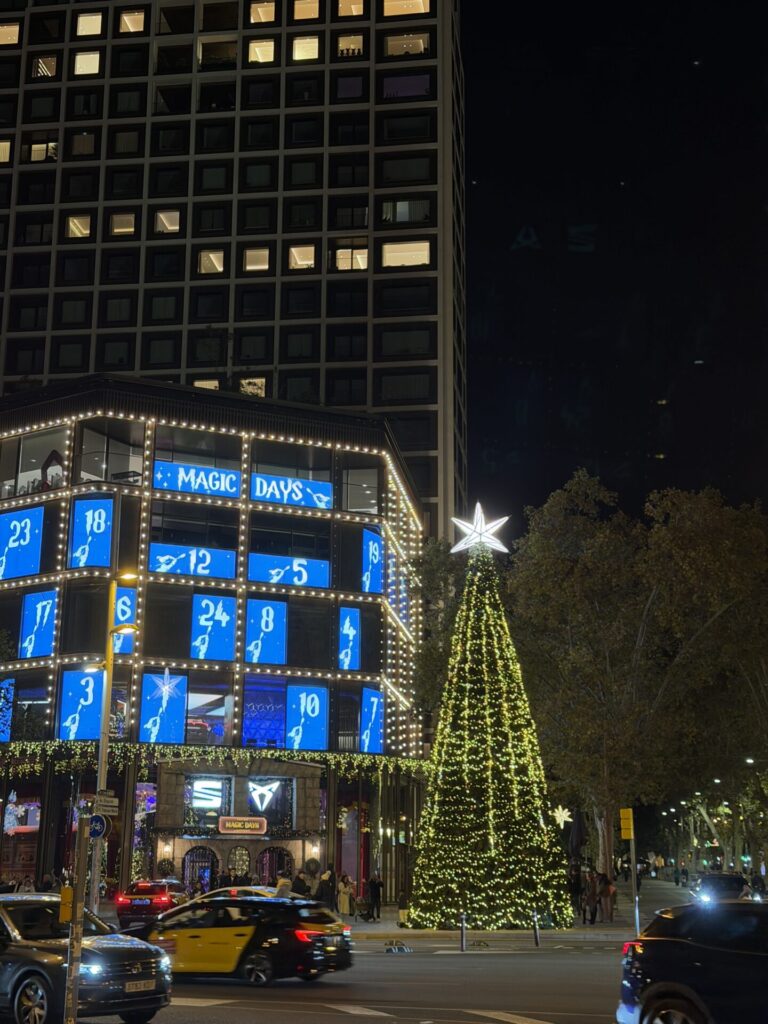 L’arbre es corona amb una estrella inspirada en la de la Sagrada Família, un homenatge als 100 anys de Gaudí que connecta directament l’esperit nadalenc amb el llegat arquitectònic més universal de la ciutat